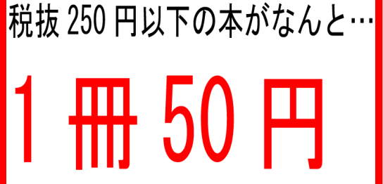 只今コミック本のセール開催中です!! 税抜き250円以下の商品は全部税抜き50円