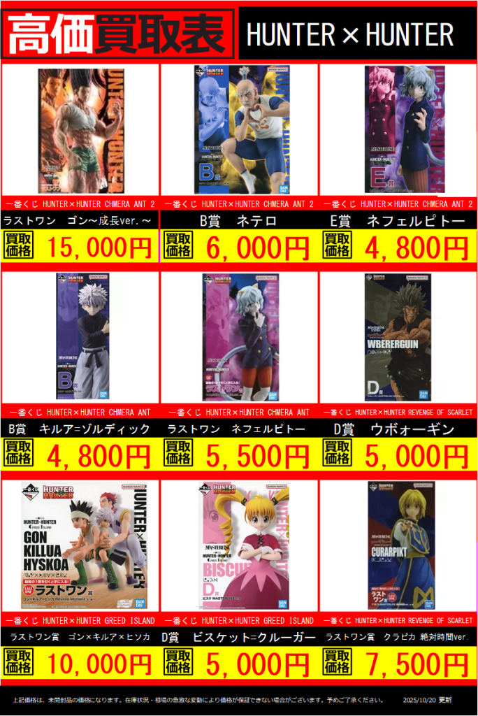 ハンターハンターのフィギュア高価買取中です!