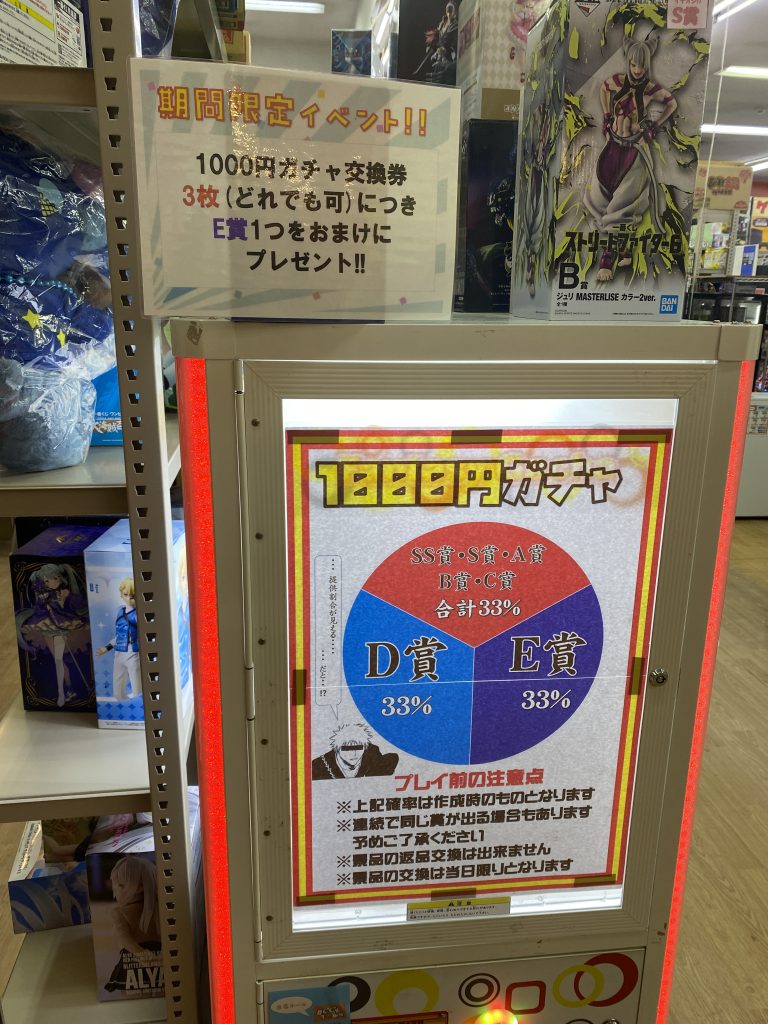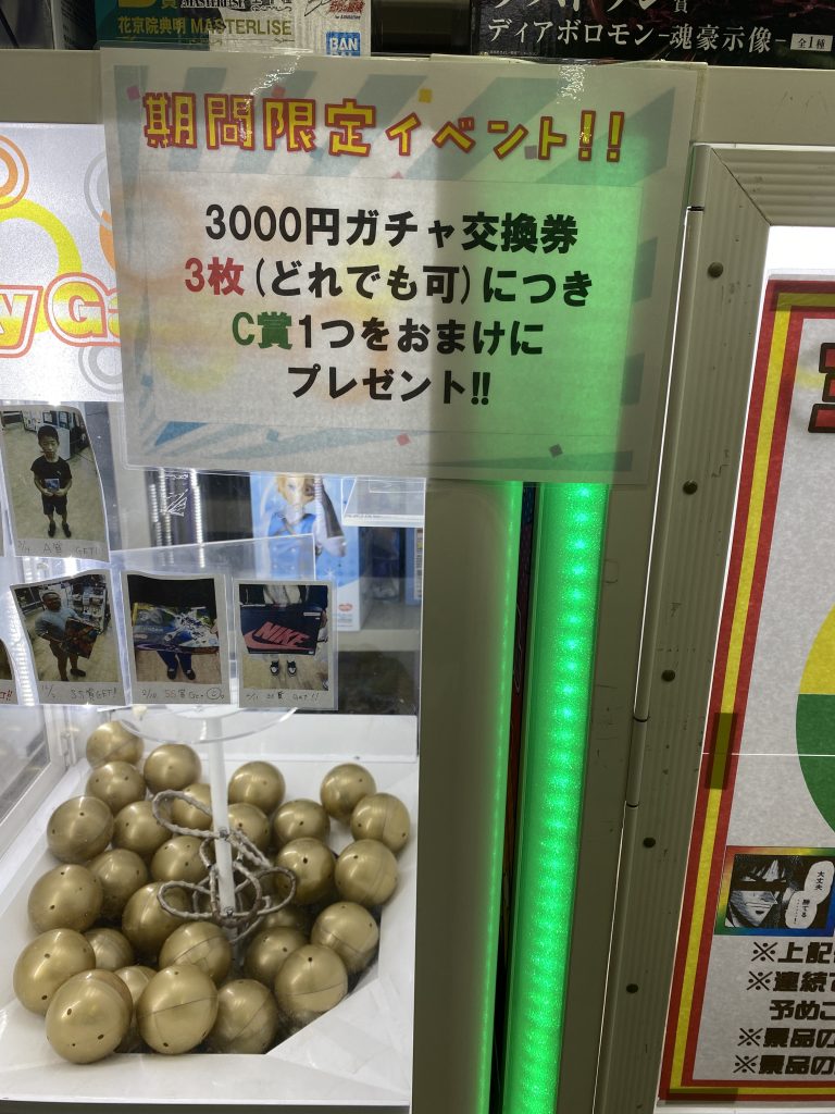 期間限定で1000円、3000円ガチャそれぞれにおまけがついてきます🎶是非チャレンジお待ちしておりますす👌