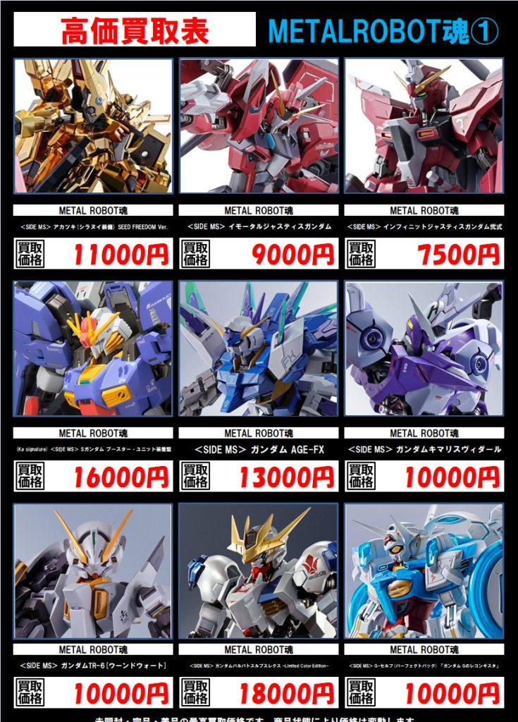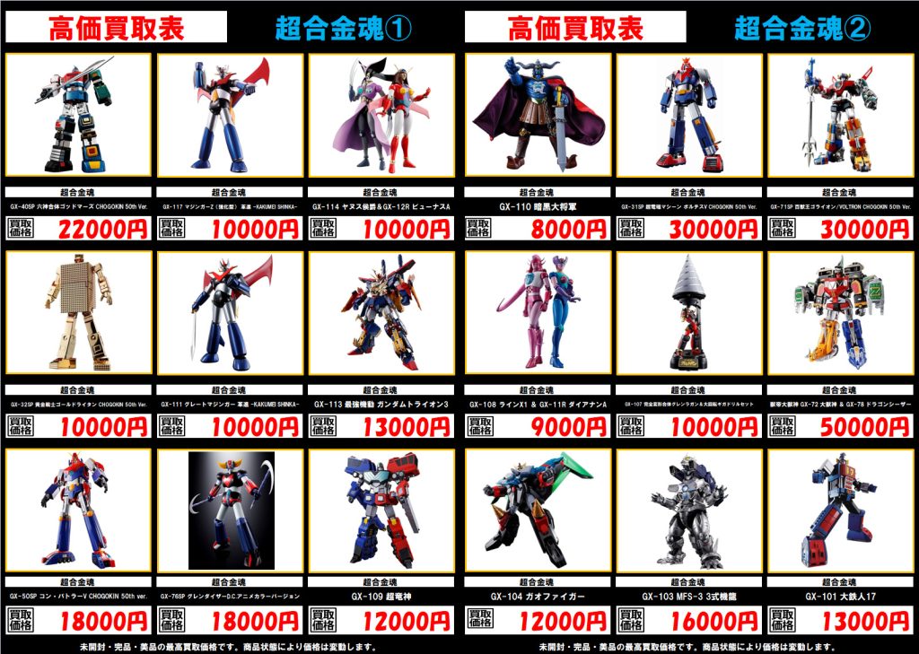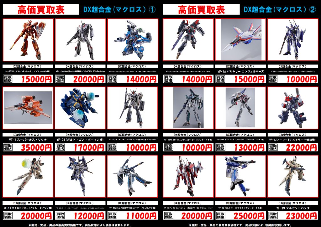 ホビー 高価買取表更新いたしました!! 2025年10月27日 今渡店 ガンダム, マクロス, メタルビルド, 超合金, 高価表 admin_booktown METALBUILD メタルビルド DX超合金 マクロス 超合金魂