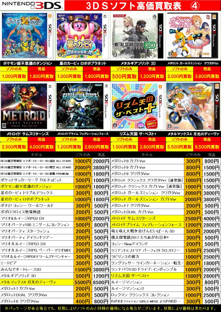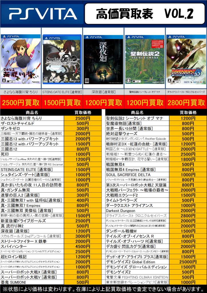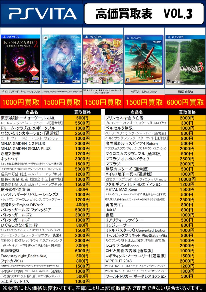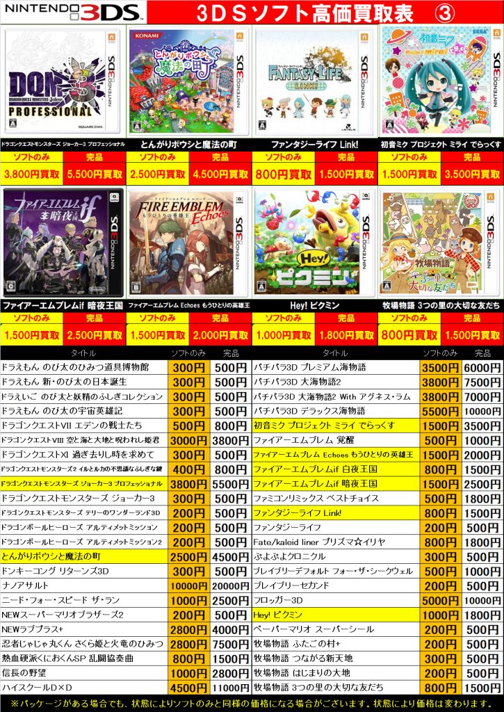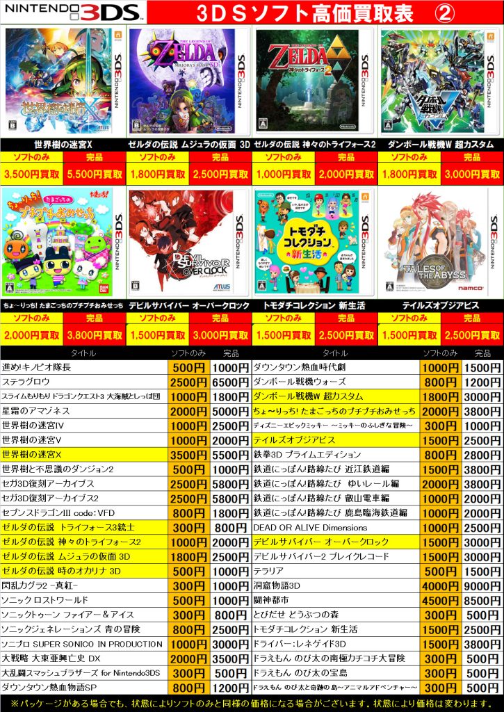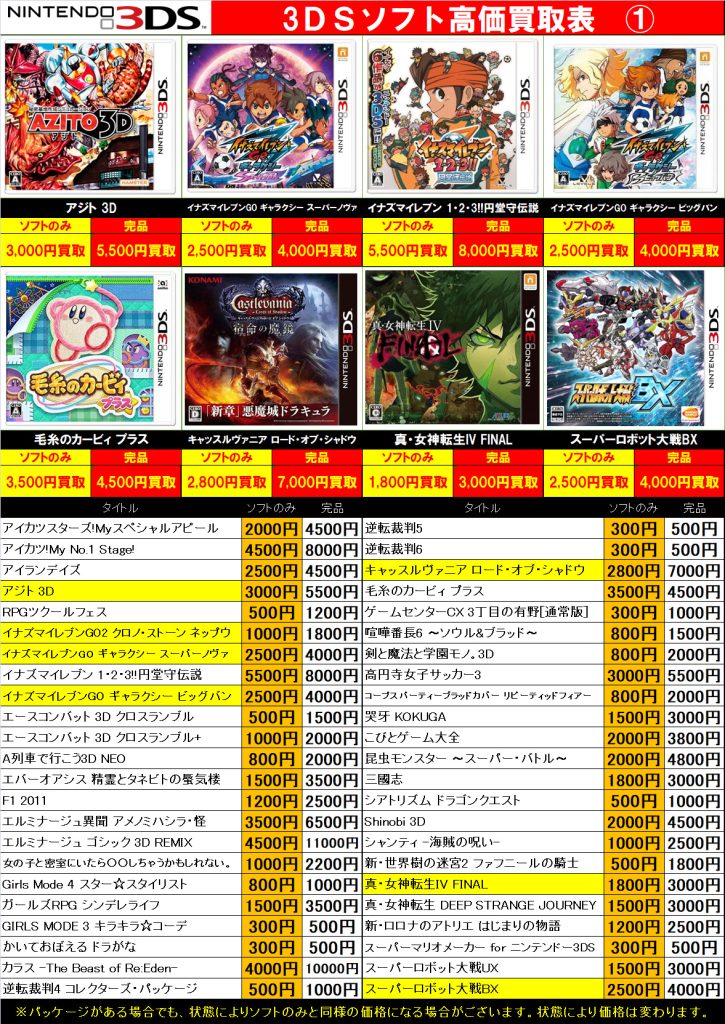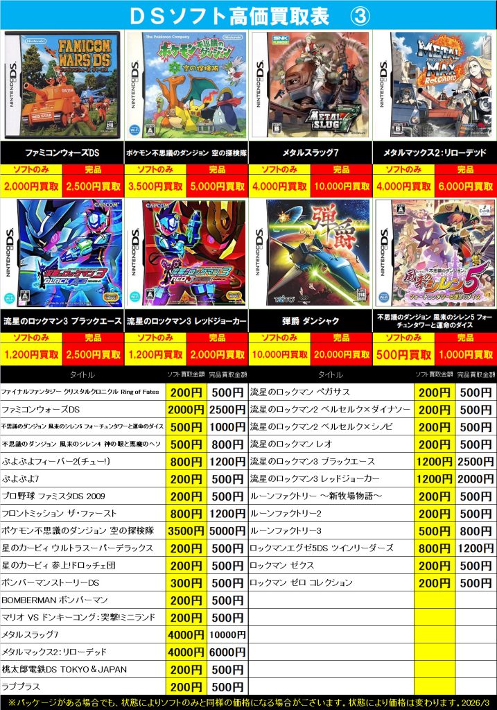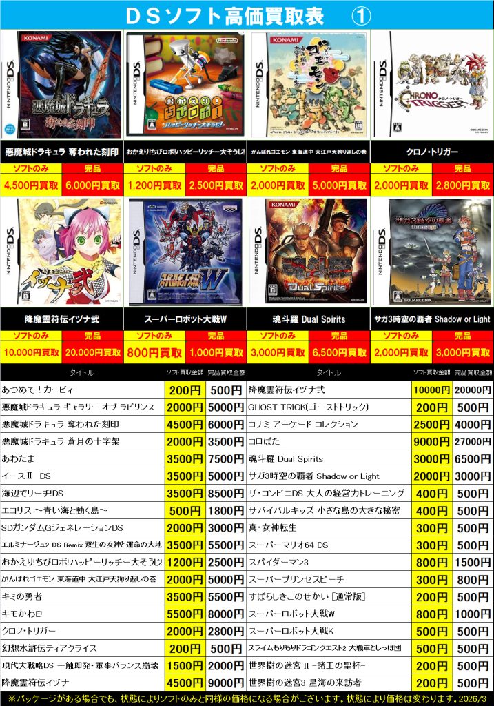 3DS・DS・PSVita 買取中!( ・`ω・´)b 2026年3月23日 今渡店 3DS, DS, PSVita, ゲームソフト, 高価表 admin_booktown ソフトのみでも買取できますのでお気軽にお持ちください♪