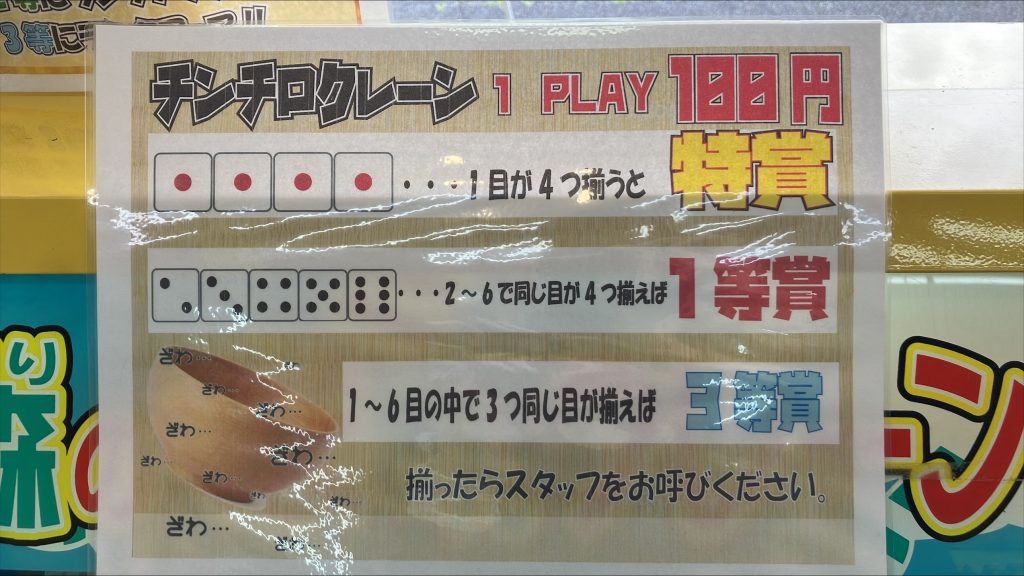 1プレイ100円でチャレンジできるので運試しに是非チャレンジしてみて下さい!!