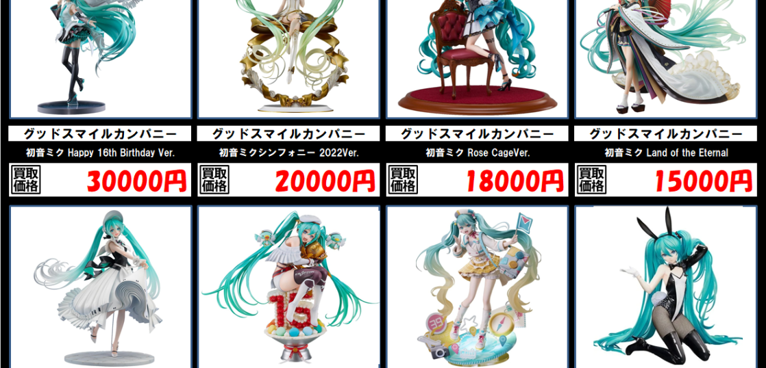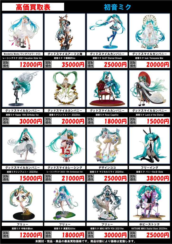 初音ミク スケールフィギュア高価買取表更新しました!! 2026年4月14日 犬山五郎丸店 初音ミク, 買取表, 高価表 admin_booktown ラインナップはコチラになります!! 是非ブックタウン犬山五郎丸店までお持ち込みください!!