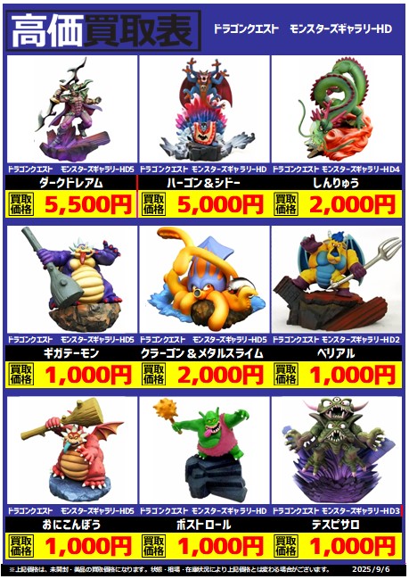 🌀🧟♂️ドラゴンクエスト 高価買取表🧟♂️🌀 2025年11月1日 瑞浪店 ゲーム, ドラゴンクエスト, フィギュア, レトロ, 高価表, 高価買取 admin_booktown ドラゴンクエスト モンスターズギャラリーHDの高価表 更新しました👏😜