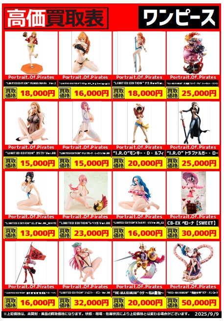 💞😍ワンピース 高価買取表😍💞 2025年11月14日 瑞浪店 フィギュア, ワンピース, 高価表, 高価買取 admin_booktown ワンピースPortrait.Of.Piratesの高価表 更新しました😙🧡