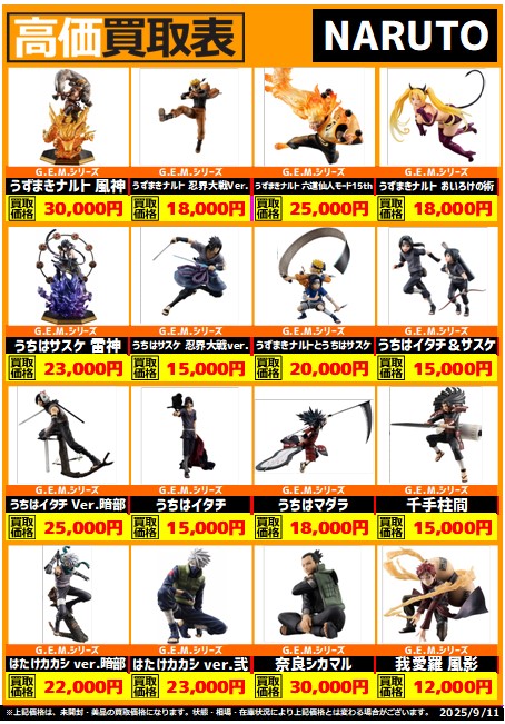 🧡🍥NARUTO 高価買取表🍥🧡 2025年11月21日 瑞浪店 NARUTO, ナルト, フィギュア, 高価表, 高価買取 admin_booktown NARUTO フィギュア 高価表 更新しました💨🍥🥡