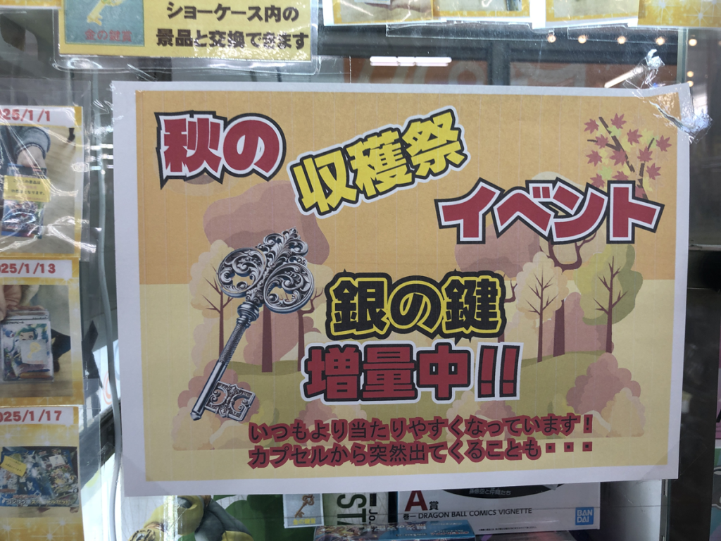 ロッカーガチャ色々イベント初めましたあああ!!!!!! 2025年12月7日 関店 クレーンゲーム admin_booktown 先ず個数が増えました!! イベント!!秋の収穫祭!! 銀の鍵が増えています!!今がチャンス! さらに今なら!ラストワンがついてきます!!全部回しても、、ええんやで 沢山のチャレンジお待ちしております!!