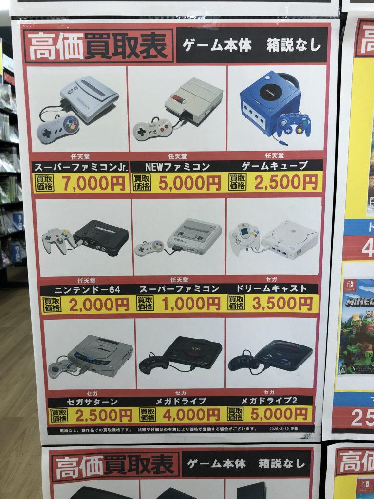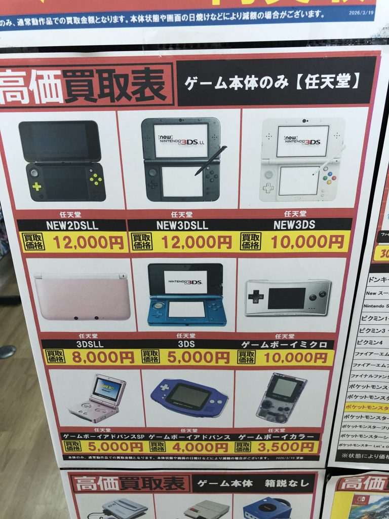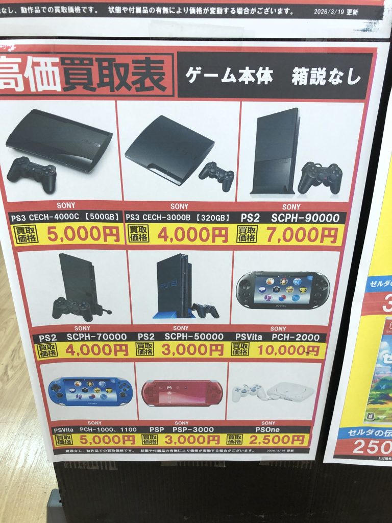 ゲーム機系の高価表更新しました!!