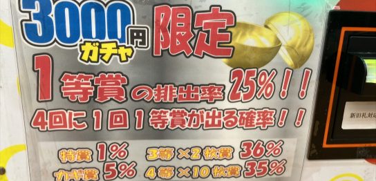 1等の排出率が25%にUP!! 確率は4回に1回の確率!!しかも4玉で1等に交換
