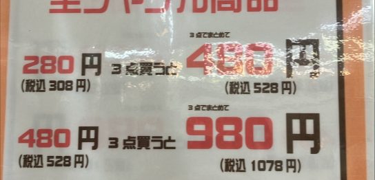 当店の280円・480円・980円は3点での購入がお得です!! 100円(税込み