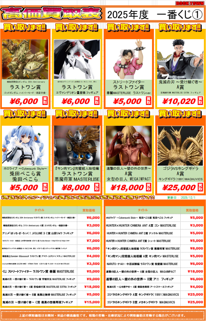 ☆ブックタウン津島店高価買取表更新しました★