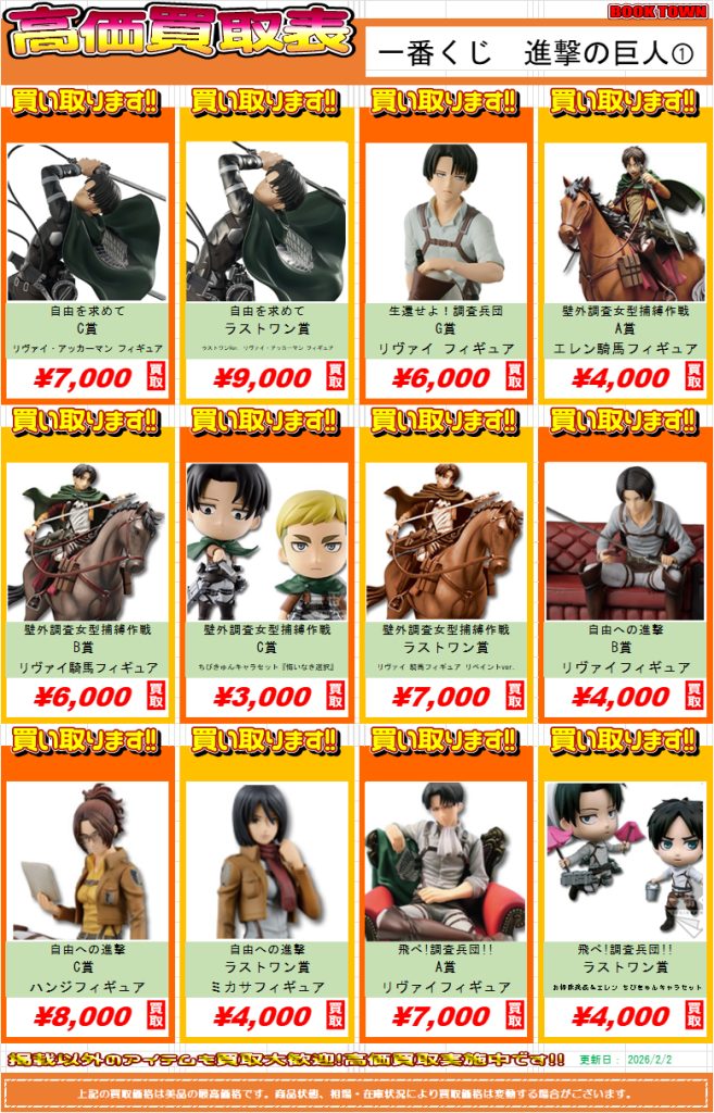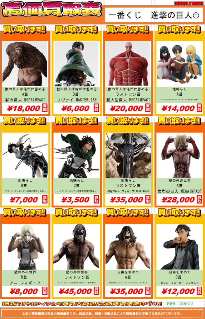 ☆ブックタウン津島店高価買取表更新しました★