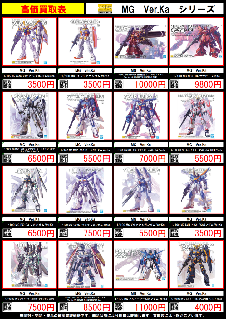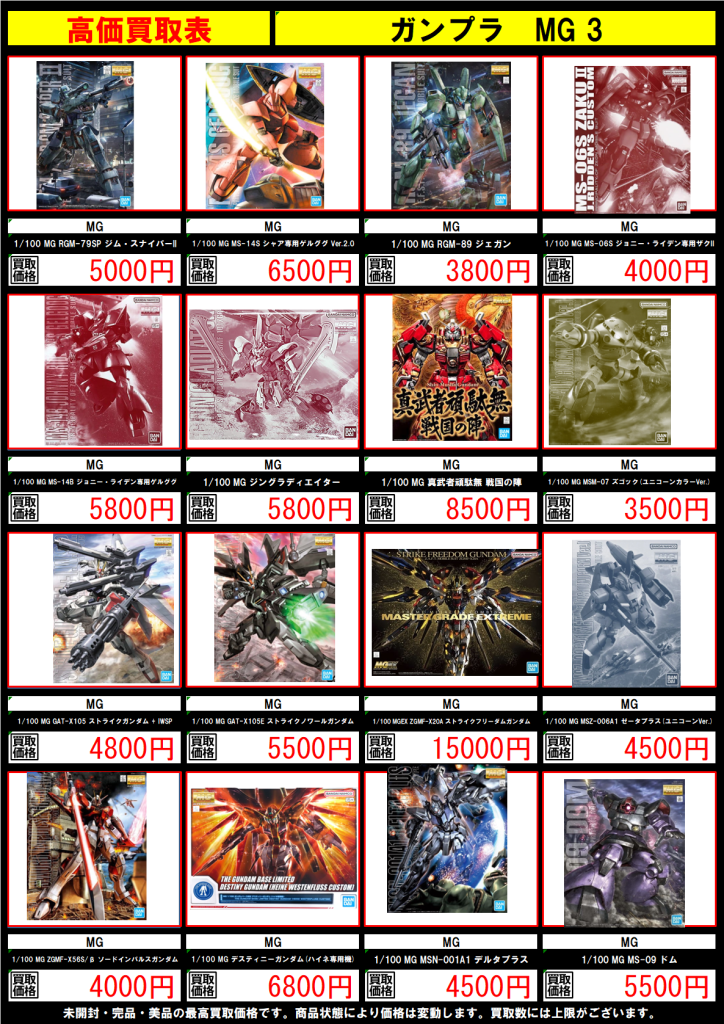 • ガンプラの高価表を更新しました!