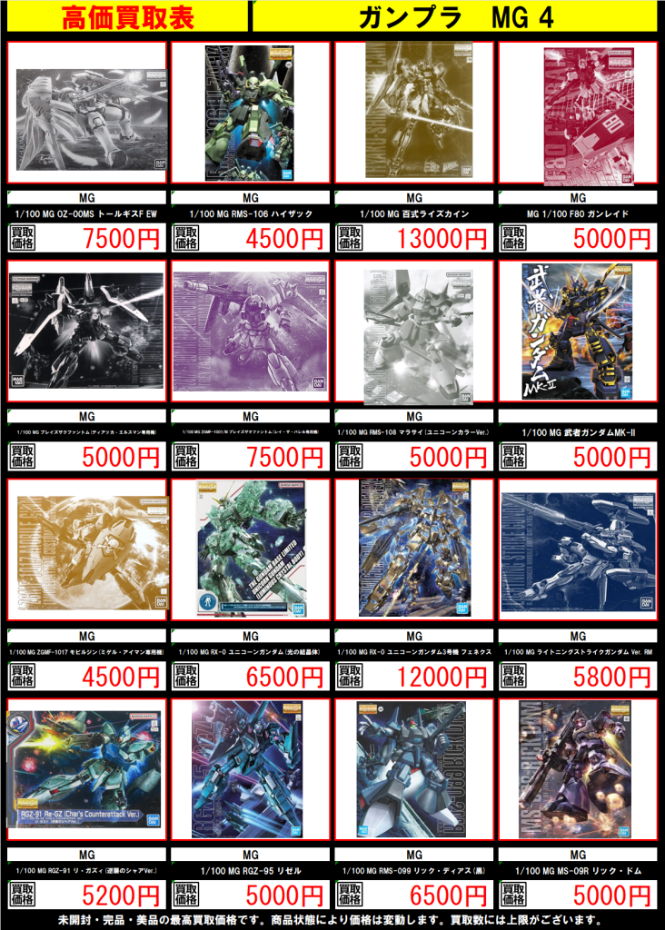 4. ガンプラの高価表を更新しました!