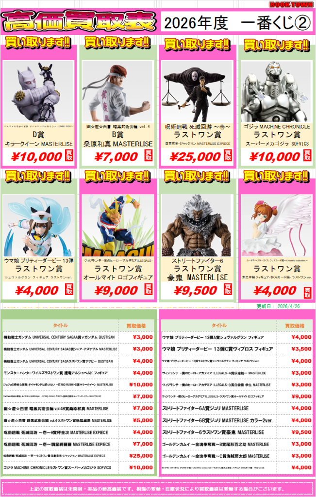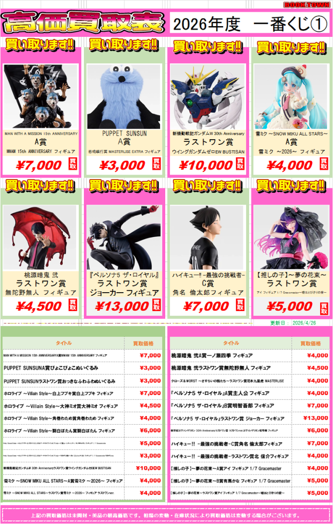 2026年度発売の一番くじを高価表にまとめました!!